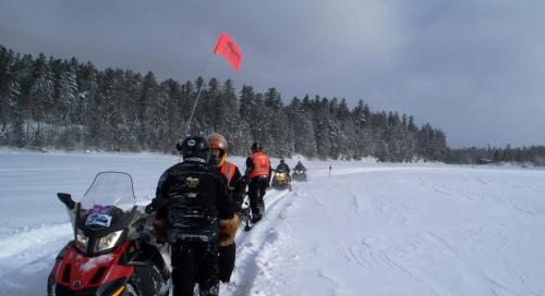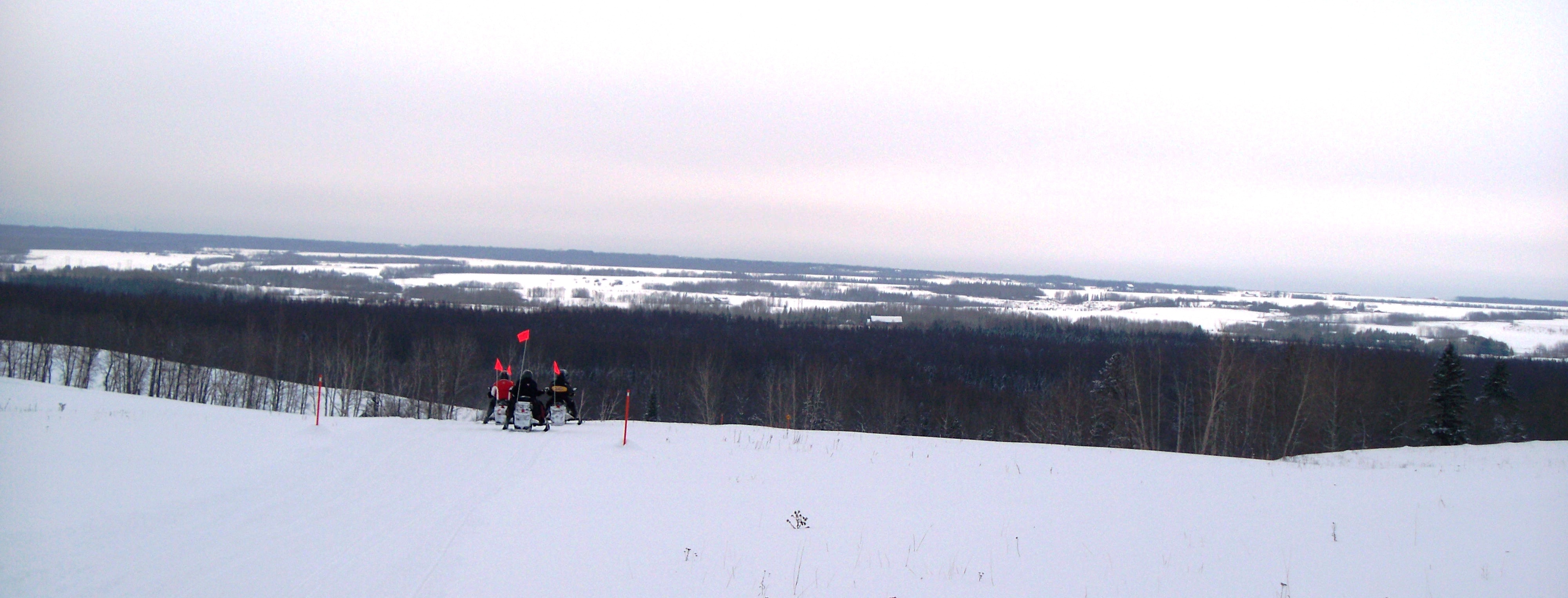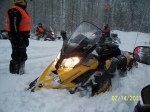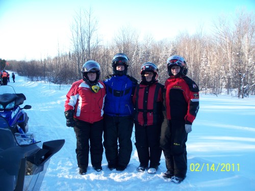 When we woke up this morning ours sleds and the trail were covered with a blanket of fresh snow. We left our motel on at 7:30 A.M. but we did not make very good time. It was hard to see the markers and find the trail. A few people got stuck but that comes with ski-dooing ( as the Canadians call our snowmobiling). We only traveled 150 miles today but it took us 10 hours. Looking forward to another great day on the sleds tommorrow.