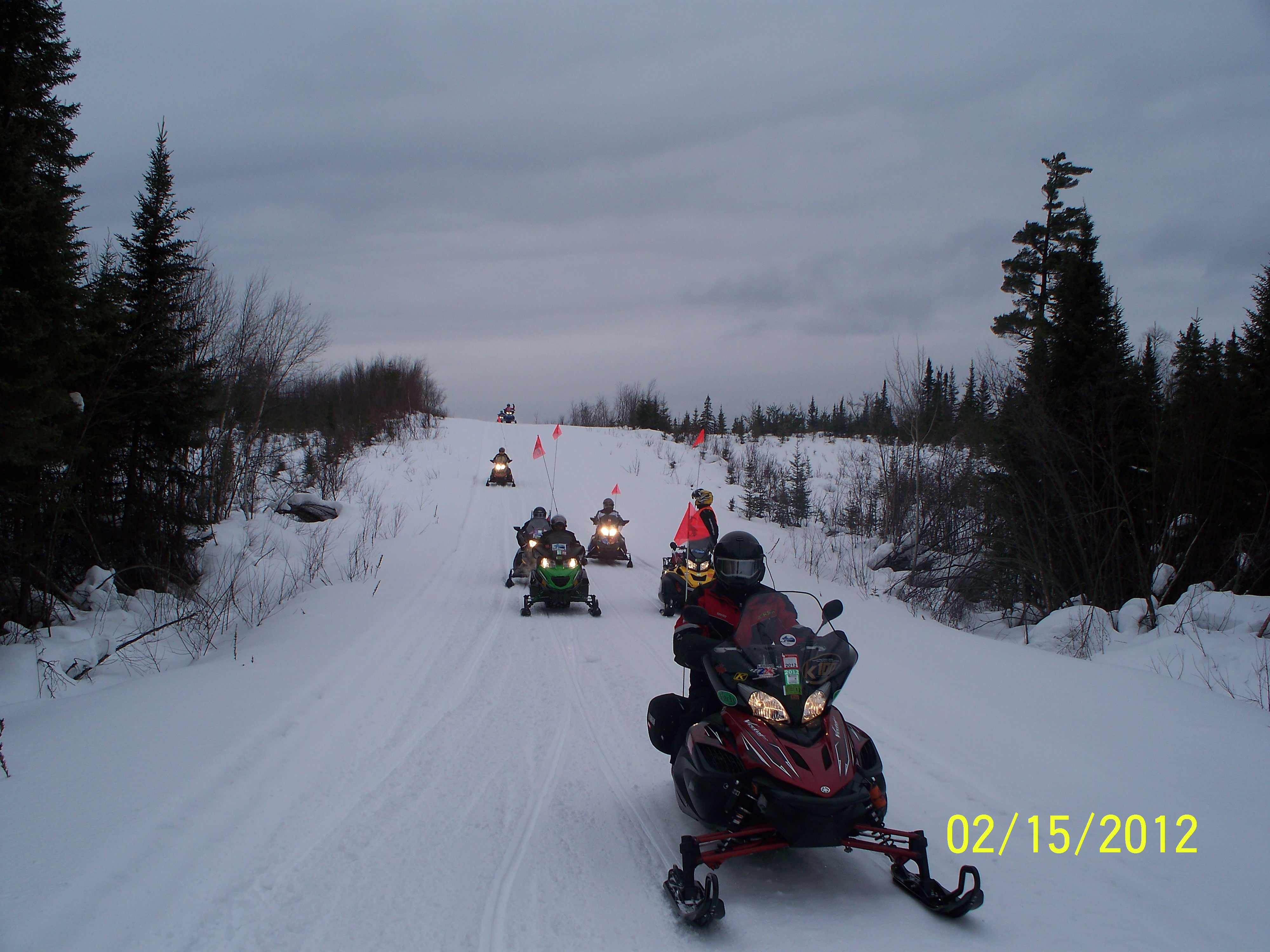 We traveled today on many types of terrain. The trails were well groomed and we had light snow this afternoon. The temperature has been running around 30 degrees for the past few days but the weather man says we will have some colder weather coming in. We are riding for a great cause – Please donate to Diabetes Research.