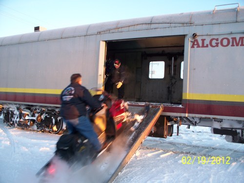 We welcome Larry, Pete and Ray that arrived in Hearst last night on the Train and we have to say goodbye to Jim A, Jim T, Kristy, Tyler and Joe that had to leave this morning. Pictured is Joe loading his sled on the train for the ride home. They will travel back to the Soo where they will pick up their truck and trailers and head back to Michigan. It was cold here in Hurst this morning -23C. At least we do not have to worry about the snow melting today..