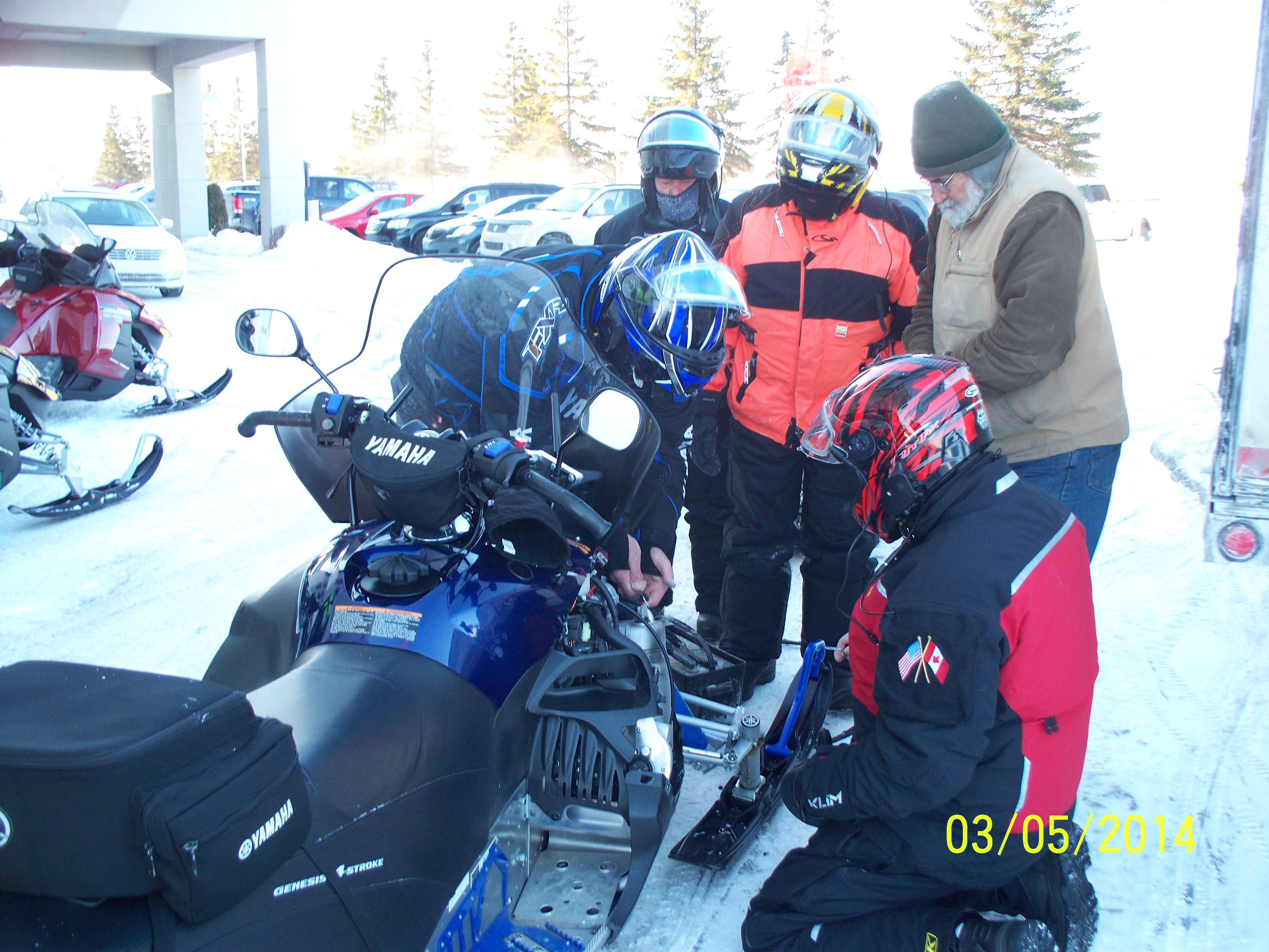 As we are getting farther North in Quebec the weather is getting colder. This morning we had a sled that would not start and had to get out the jumper cables and battery. After a few tries it started and we were on our way. The temp is -22 degrees and we have 186 miles to ride today.