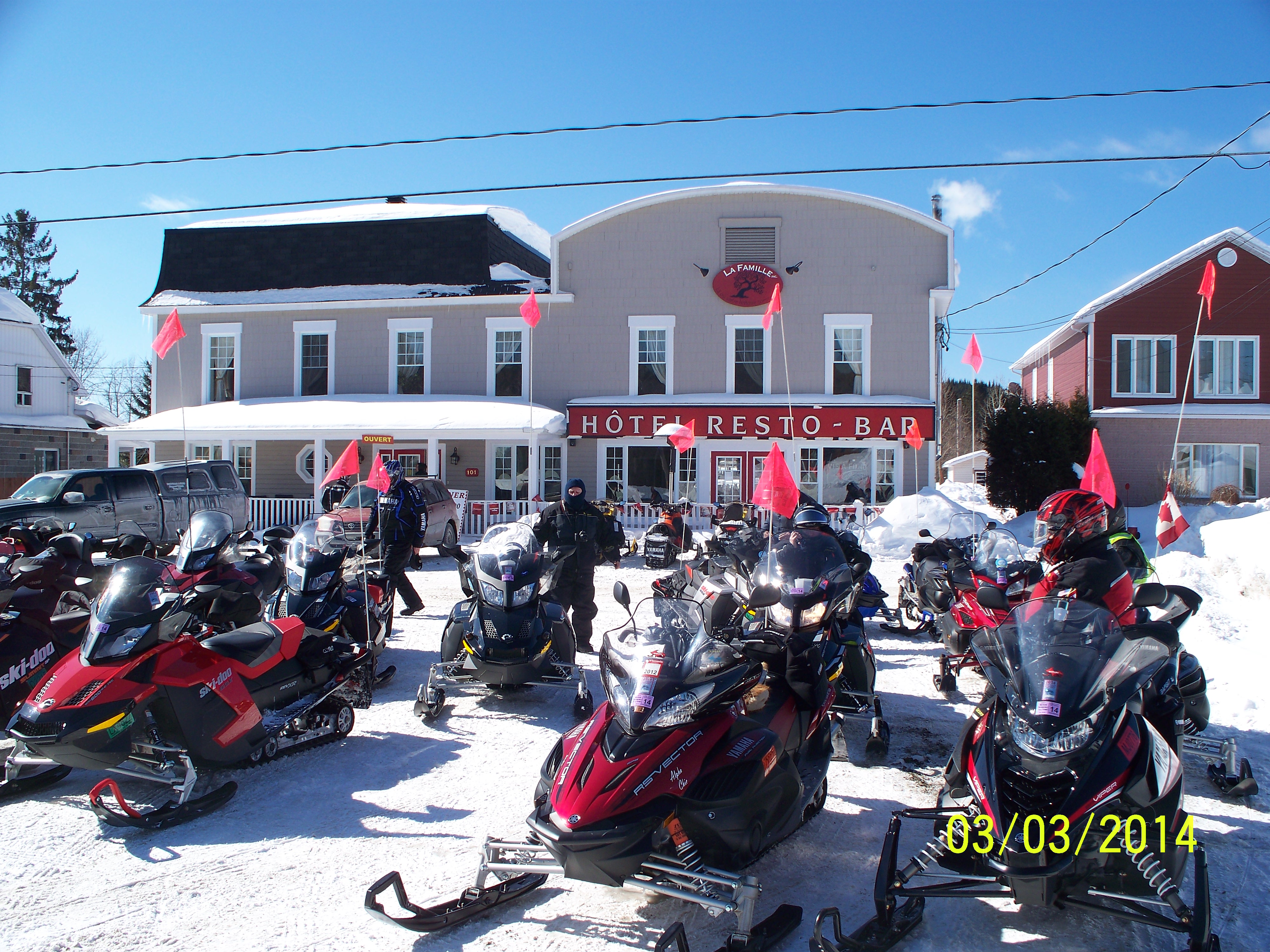 The sleds were ready to roll at 7:00 this morning. It wasn’t as cold as it has been..10 degrees but with the wind it feels like 0.. Good trails this morning and after 105 miles we stopped at a local snowmobile club for lunch. This afternoon we encountered many horses pulling sleighs.. We had to trailer this evening across the St. Lawrence Seaway and after a good nights sleep we will be ready to ride again tomorrow. In the morning we will start to head back North.