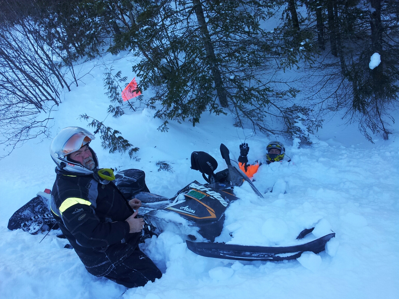 We have 16 people riding the Michigan leg of the World Tour. 3 Women (which are Alpha Chic’s), and 13 men. The average age of our riders is 67and 3/4 years old. 7 ride Ski-Doo’s, 7 ride Yamaha’s, 1 rides a Artic Cat and 1 rides a Polaris. Our oldest rider is 80 and the youngest is 57. We have traveled 9 days and covered 1,110 miles. We have 5 more days before our journey is done.