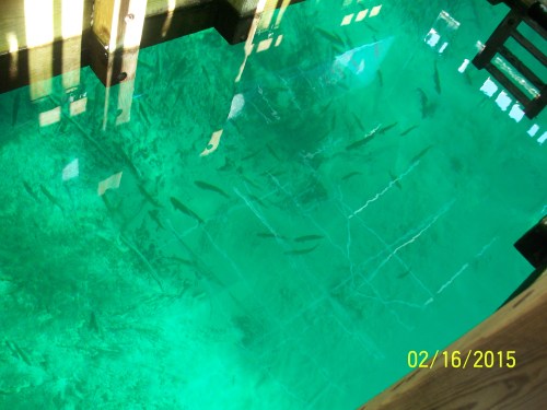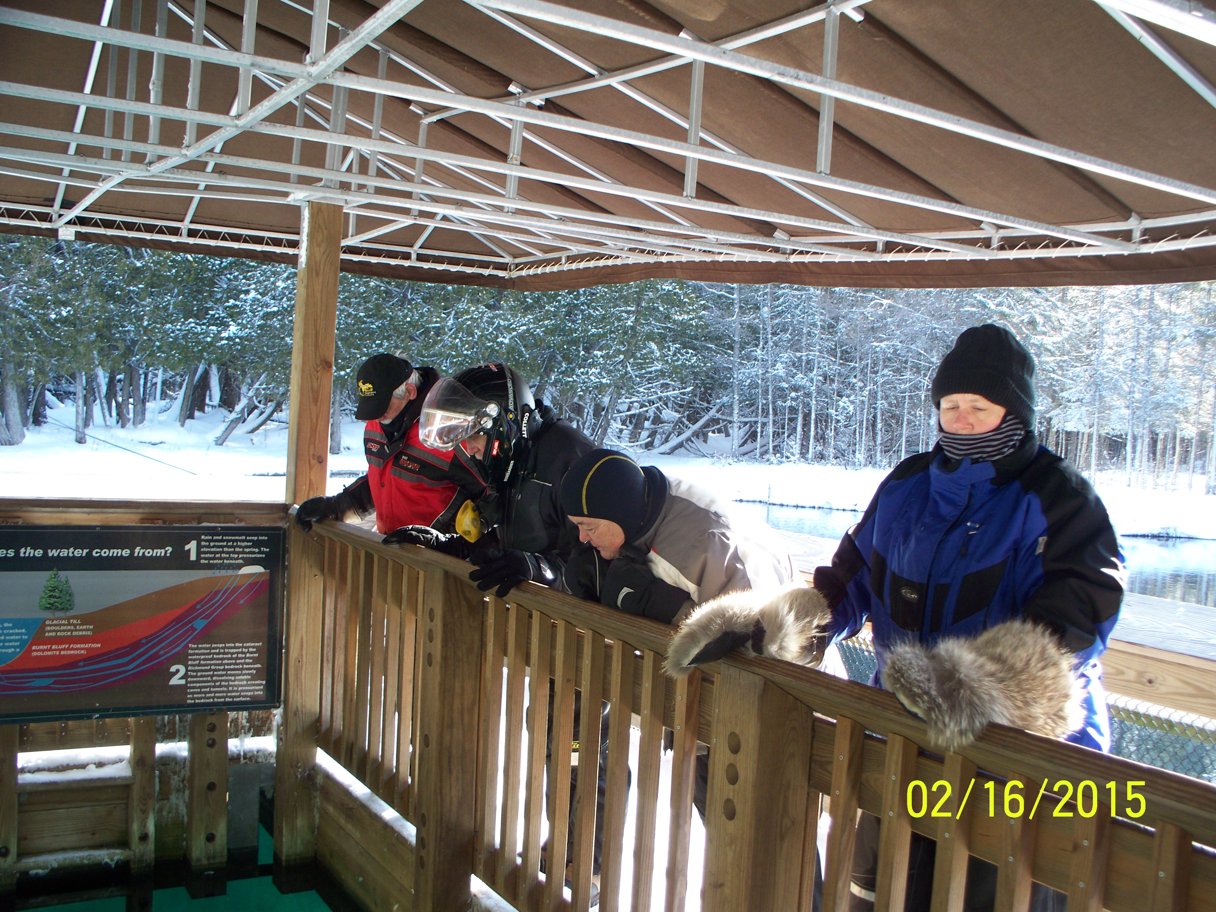 The water is crystal clear and we are viewing the fish at 45 feet down. The springs flow constantly and keep the water temperature at 45 degrees year round.