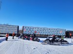 The parking lot of the hotel, looks like a sea of Snowmobiles!